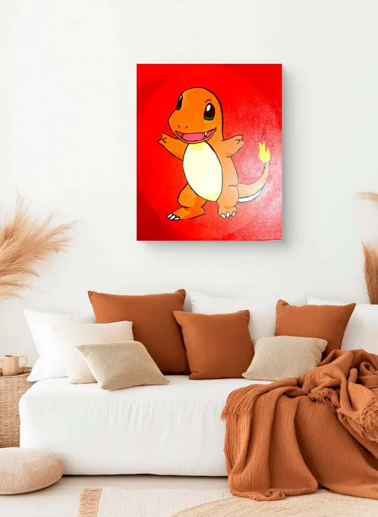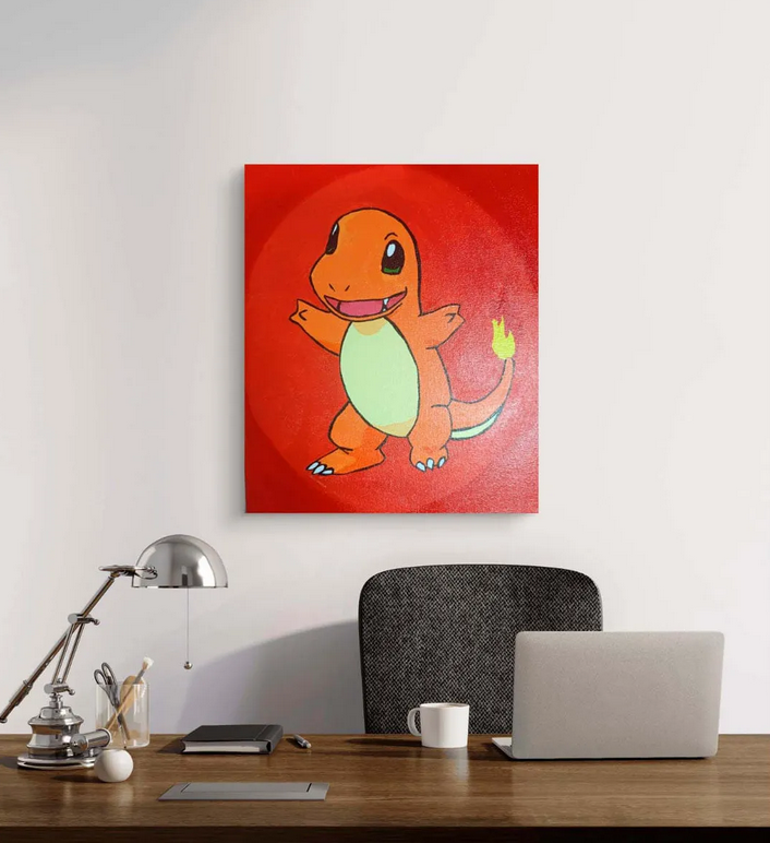Pintura de charmander un pokémon de tipo fuego de la primera generación que tiene una apariencia similar a un pequeño dinosaurio con una llama en la punta de su cola. Es conocido por su lealtad y evoluciona a charmeleon y luego a charizard. Su aliento es una llama ardiente que muestra su salud y nivel de energía. Pintura acrílica sobre lienzo El Cuadro Decorativo FanArt de Charmander Pokémon incluye un certificado de autenticidad que respalda su exclusividad y su carácter artesanal. Al adquirir esta pieza, estás apoyando el arte hecho a mano y el trabajo de artistas independientes como Ecastro.
