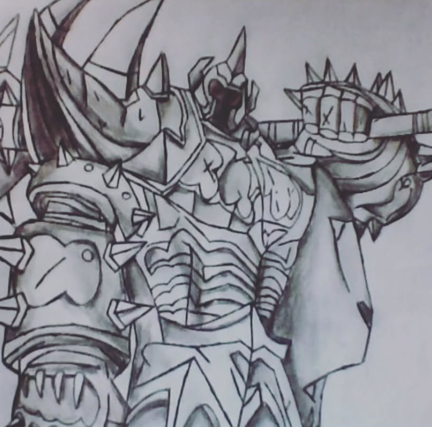 Este dibujo mezcla habilidad y pasión artística, utilizando lápiz, grafito y tinta china en una técnica mixta cuidadosamente aplicada sobre papel de 75 gramos. La elección de materiales y la técnica resaltan los contrastes profundos y los detalles intrincados, otorgando vida al imponente Mordekaiser. Cada línea y sombreado reflejan el estilo personal de ecastro, destacando su impecable destreza como ilustrador.
