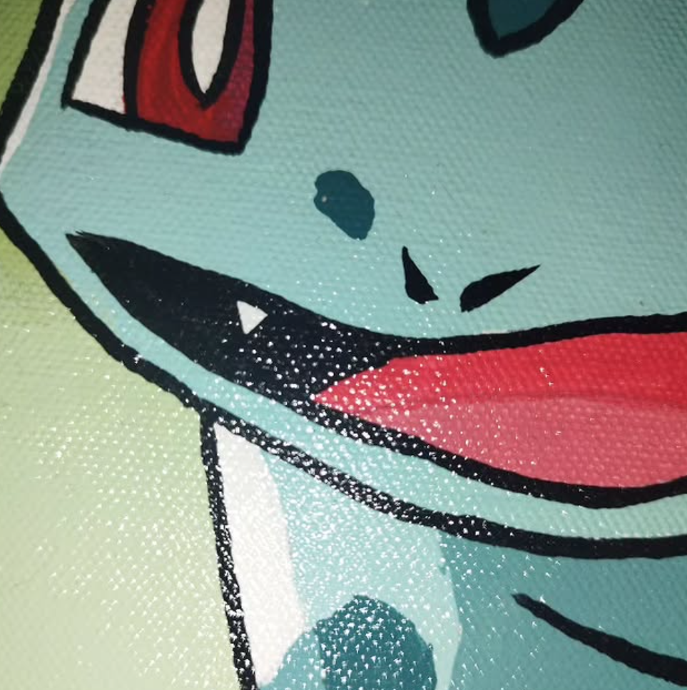 Ya sea que estés buscando decorar tu espacio, regalar algo especial o simplemente añadir otra pieza única a tu colección, este cuadro hecho a mano será una elección acertada. Dale vida a tus paredes con el arte de ecastro y celebra todo lo que amas de Bulbasaur y el mundo del animé y manga.